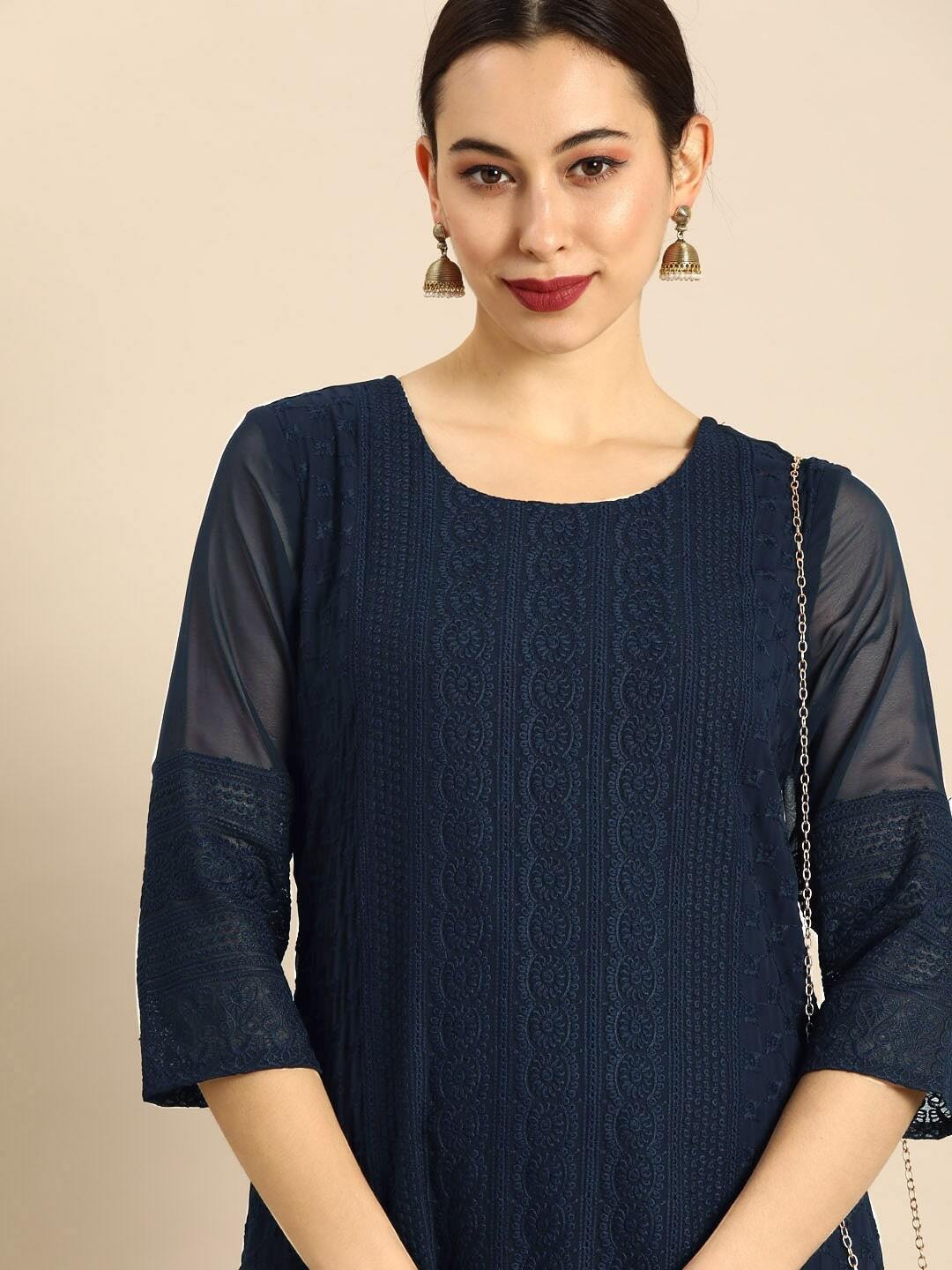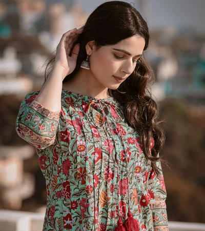 Women Pink & Off-White Printed Kurta with Palazzos